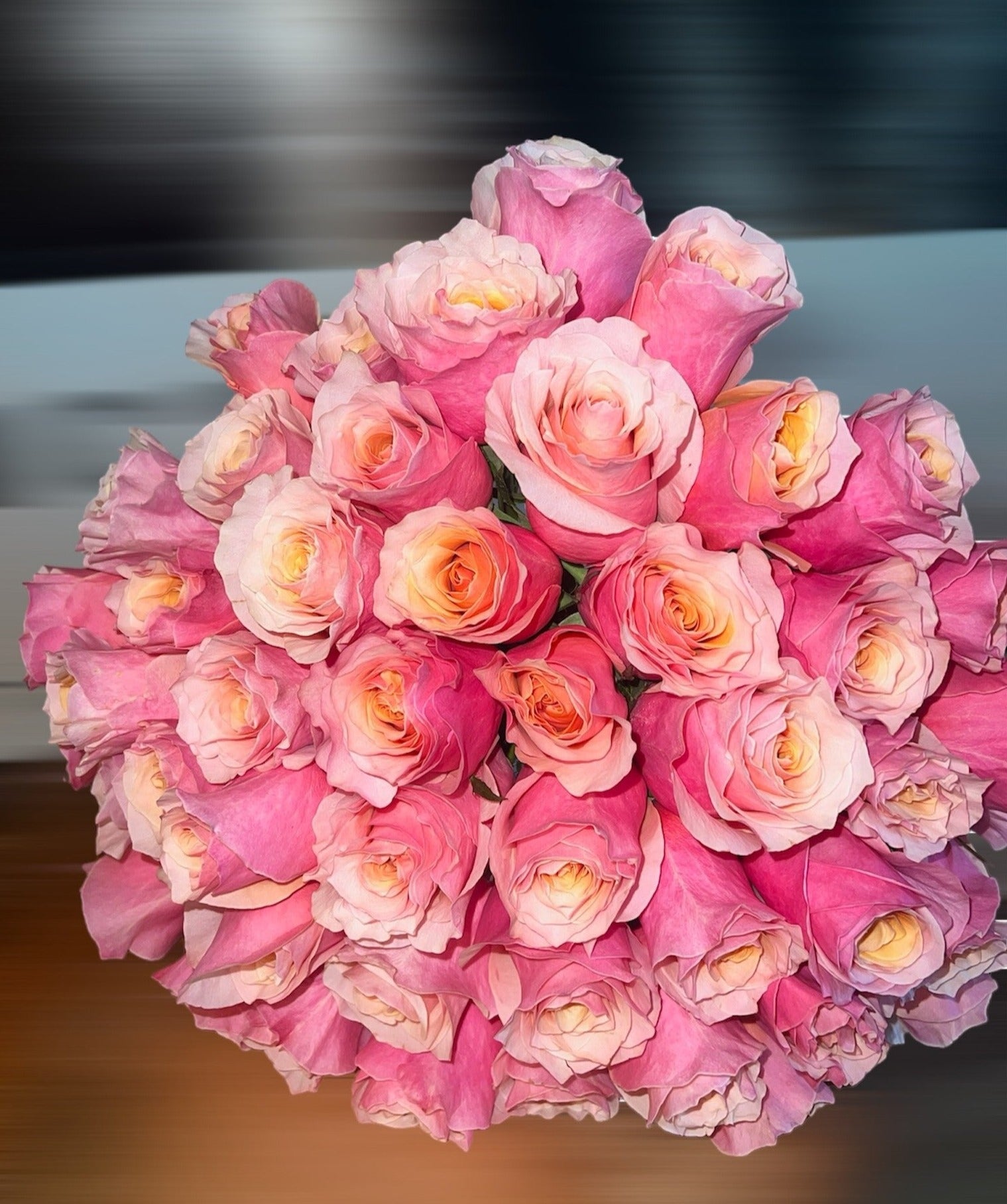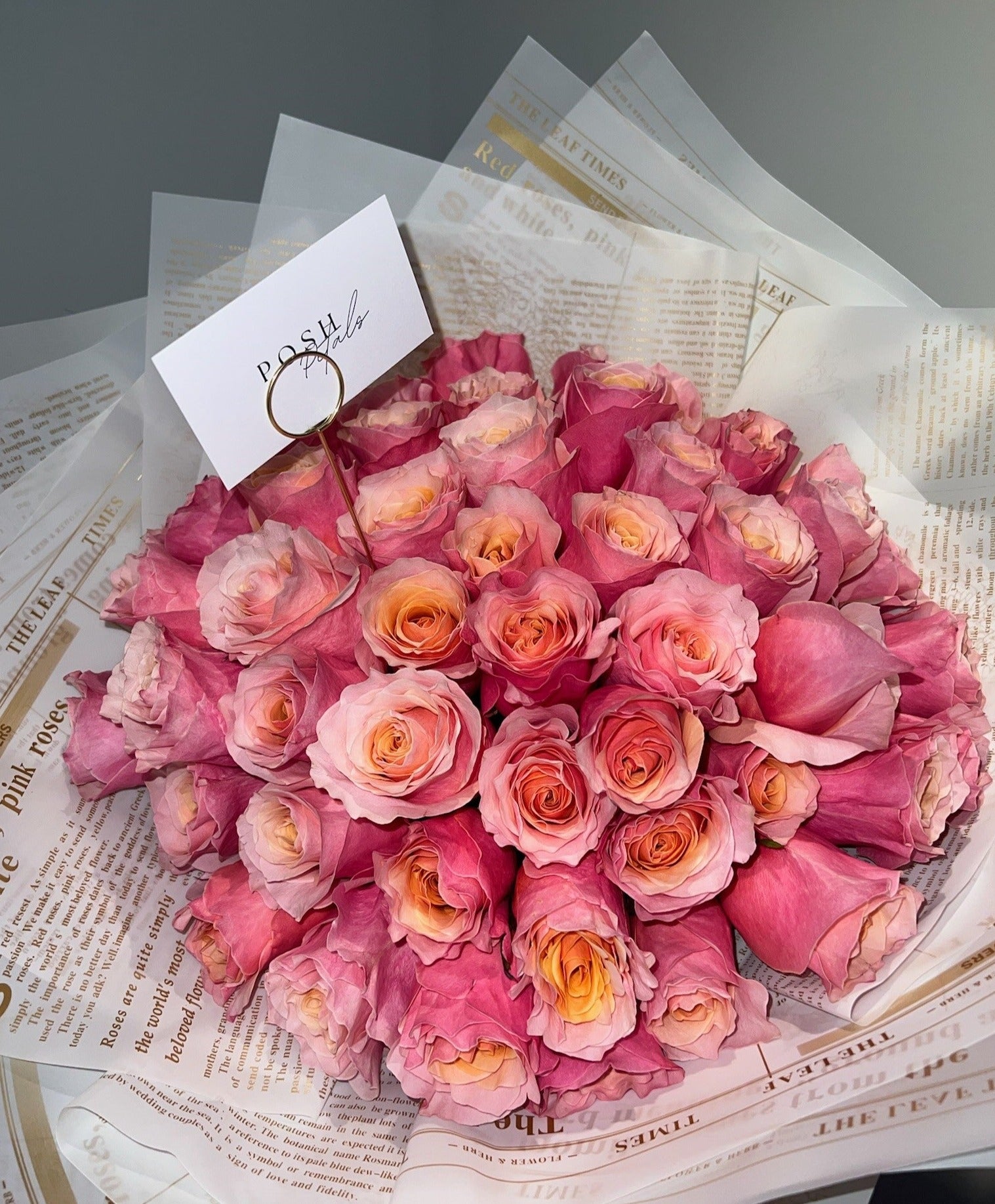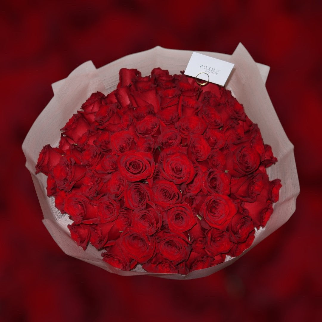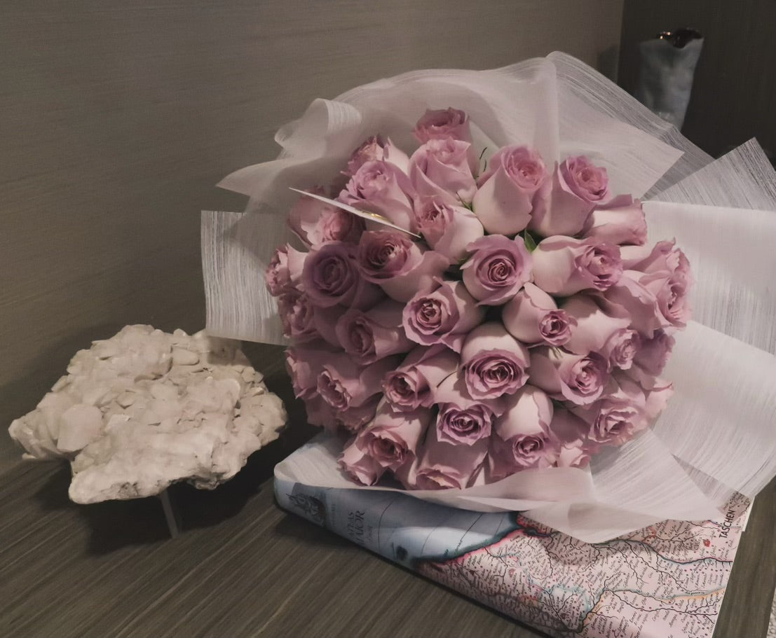 Indulge in luxury with our Grand Rose Bouquet. Overflowing with huge, exquisite roses, this bouquet is a sight to behold. 50 roses or more.